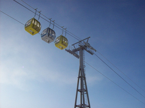 2004年11月8日一次試車成功, 2004年12月2日通過國家和地方有關部門的驗收,正式交付運營。索道位于內蒙牙克石市東南約16公里處,型式為單線循環固定抱索器吊廂組式,線路水平距離2818米,高差287.7米,單向小時運量300人。