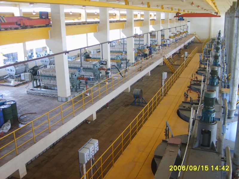在萃取設備上,多數使用混合澄清式萃取箱(包括淺池和深池式),個別項目用過離心萃取器,如金川3萬噸加壓浸出項目;在萃取箱材質上,可選擇PVC板、FRP、鋼襯FRP、砼襯FRP、不銹鋼等,各材質萃取箱中國恩菲均涉及,且投入使用;在萃取箱規格上,恩菲所設計的,小至混合室尺寸150X150mm,大至直徑2000m,在鎳鈷精煉項目均已投產使用。